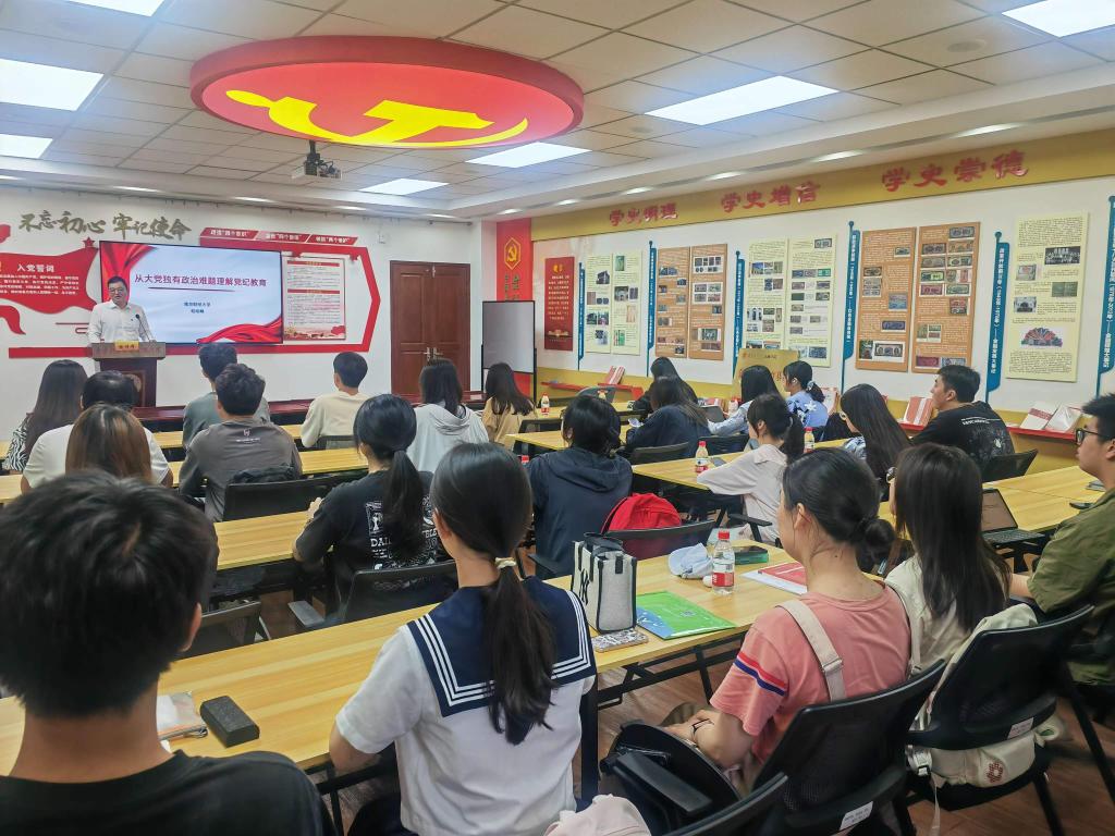 5月17日上午,成人片 对外联络处处长、成人片 本科生第五党支部政治辅导员陆明峰于德经楼507会议室给本科第五党支部全体党员以“从大党独有政治难题理解党纪教育”为主题,讲授了一堂党纪学习教育专题党课。陆处长以“什么是大党”为出发点,从党的团结和集中统一、党内思想统一、党员教育管理等方面深刻阐述了大党独有难题的具体内容,并指出了时刻保持解决大党独有难题的清醒和坚定的重要性和必要性。他强调,随着党员...