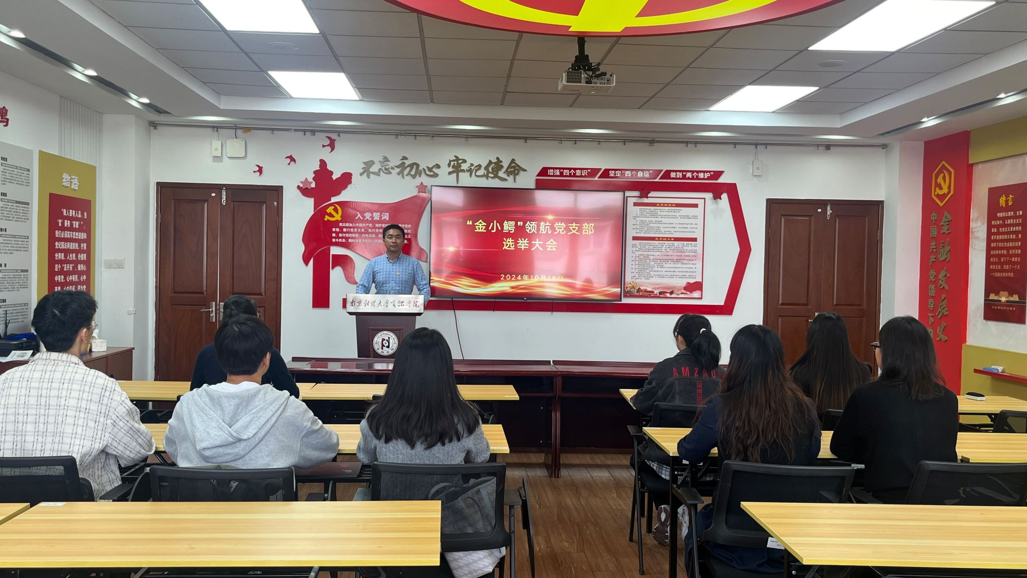 2024.10.1810月18日,“金小鳄”领航党支部召开换届选举大会。会议由姚定俊主持。根据《中国共产党章程》《中国共产党基层组织选举工作条例》有关规定及上级党委部署要求,按照党支部换届选举议程,姚定俊同志通报了到会党员人数,党员到会人数符合换届选举有关规定。与会全体党员严格按照有关规定和程序,以无记名投票的方式选举产生了支部书记。当选的支部书记姚定俊同志发言表态:将继续坚持以习近平新时代中国特色社会主义思想为指...