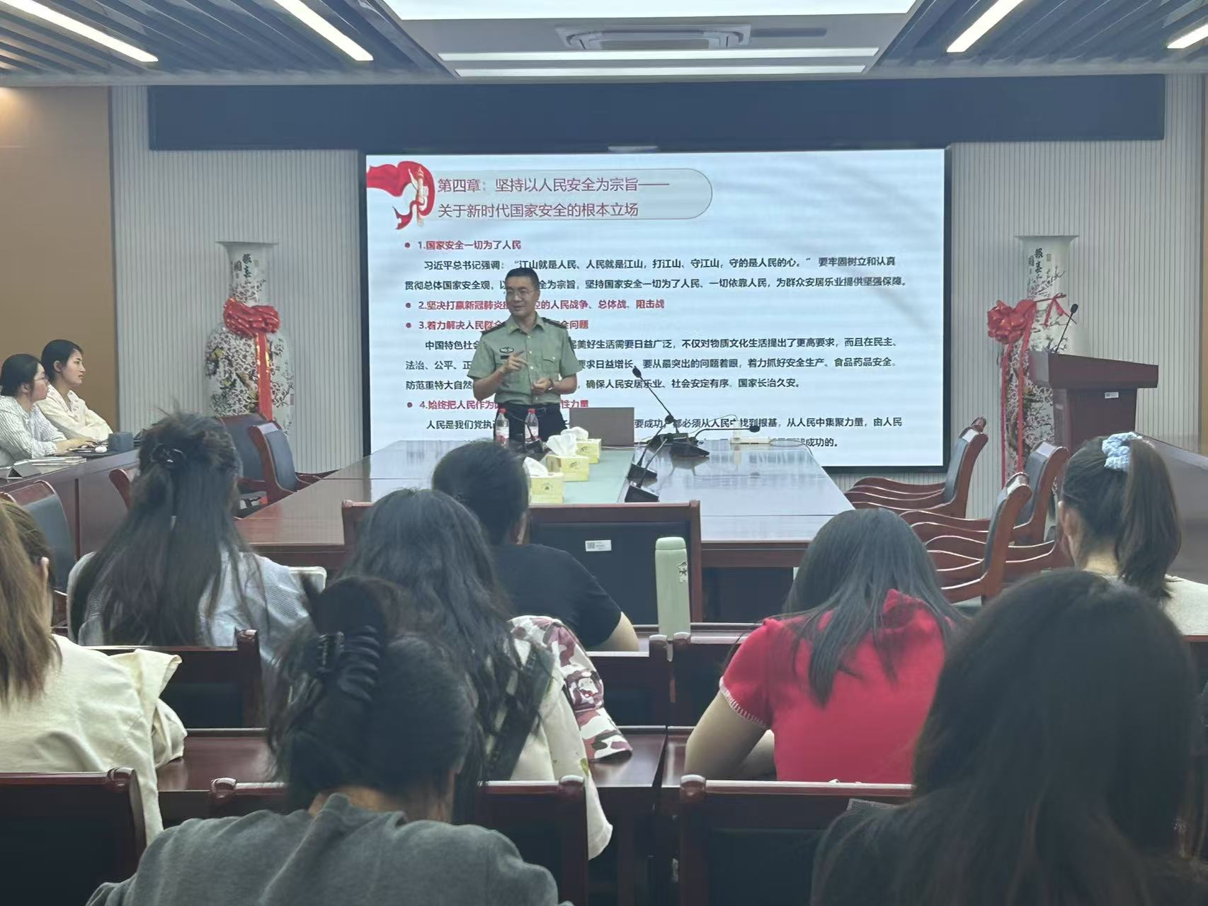 2025.04.16为提高成人片 党的发展对象的党性修养,提高思想政治素质,进一步深化对党的创新理论的理解,坚定理想信念,4月16日中午,成人片 第23期党的发展对象培训班开班仪式在德经楼508教室顺利开展。保卫处副处长潘雪峰出席授课,本期90名发展对象参加。潘雪峰老师以《深入学习贯彻总体国家安全观》为题,从理论和实践两个维度,全面系统地解读了总体国家安全观的内涵、意义和要求。他指出,总体国家安全观是新时代中国特色社会主义思想...