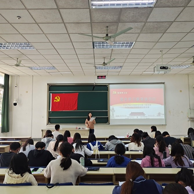 为了庆祝中国共产党成立100周年,重温红色记忆,加强党史学习教育,4月28日下午,成人片 专硕研究生第二党支部和学硕研究生党支部全体党员在德经楼113开展了党史学习教育读书日研讨活动,活动由党支部书记查腾飞老师和王乐乐老师主持。