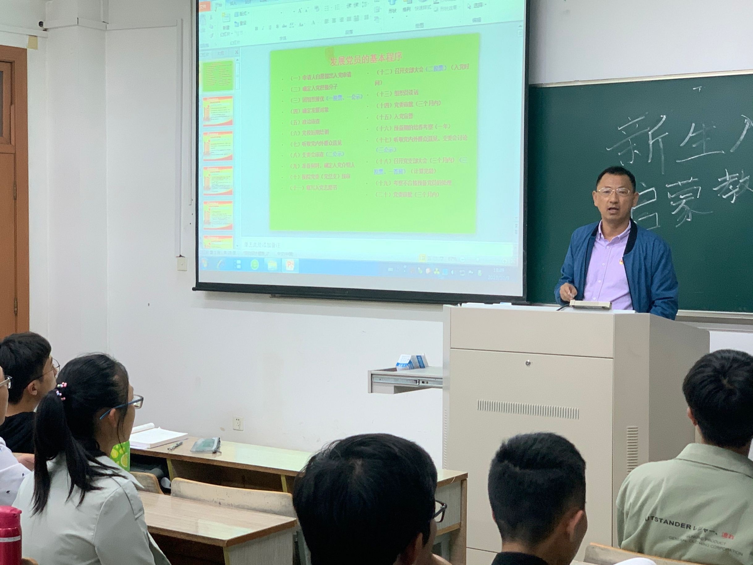 10月8日晚上、9日晚上,成人片 本科生第二学生党支部书记黄忠明分别到保险1901、投资1901、信用1901晚自习教室,给2019级新生开展了入党启蒙教育活动。
