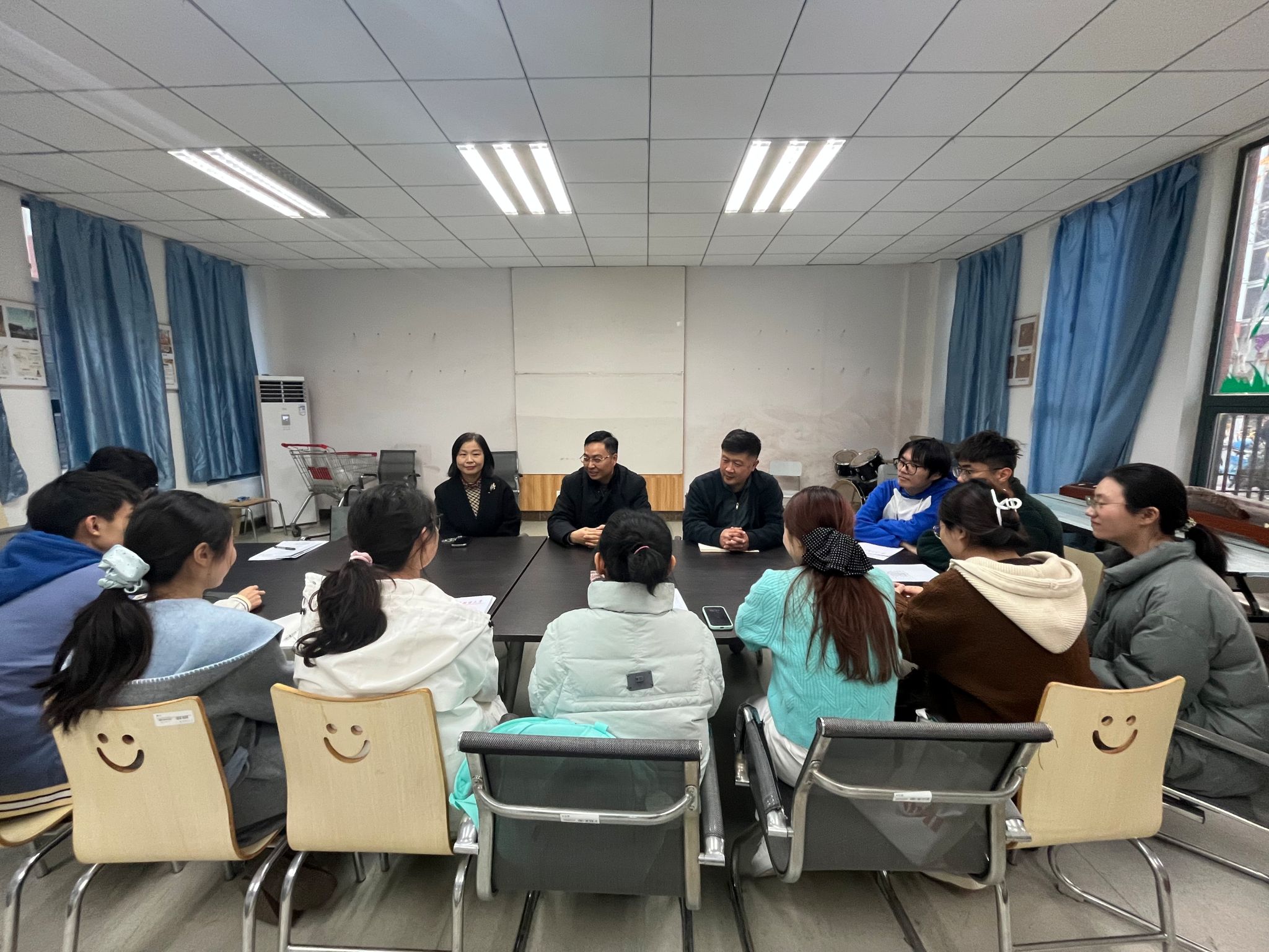 12月1日下午,党委常委、宣传部部长、成人片 研究生第一党支部政治辅导员朱军在仙林校区十六号宿管站活动室与支部党员座谈,并深入十六号宿管站1栋210和205室走访交流。成人片 党委书记孙菲、党委副书记张士青陪同参加。