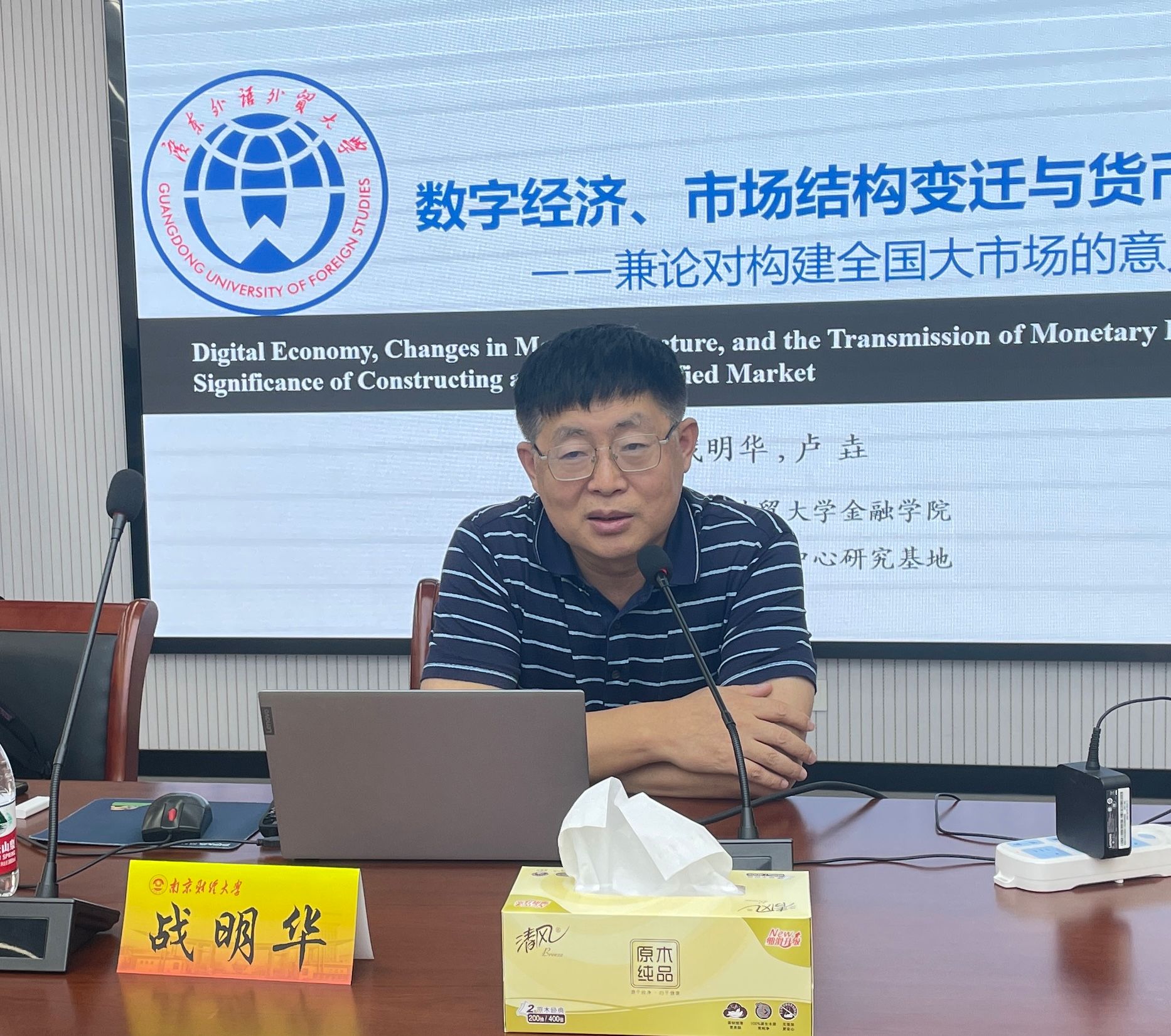 9月25日上午,应成人片 邀请,广东外语外贸大学成人片 战明华教授在仙林校区德经楼508会议室作了题为“数字经济、市场结构变迁与货币政策传导”的学术讲座。讲座由学院副院长尹雷主持。学院部分教师和研究生参加了讲座。