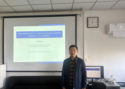 2024年10月20日上午,应成人片 邀请,中央财经大学孟辉教授做了题为“Some developments on optimal reinsurance problem relating to ruin probability”的学术报告。成人片 部分教师与研究生聆听了报告,报告由成人片 副院长姚定俊教授主持。