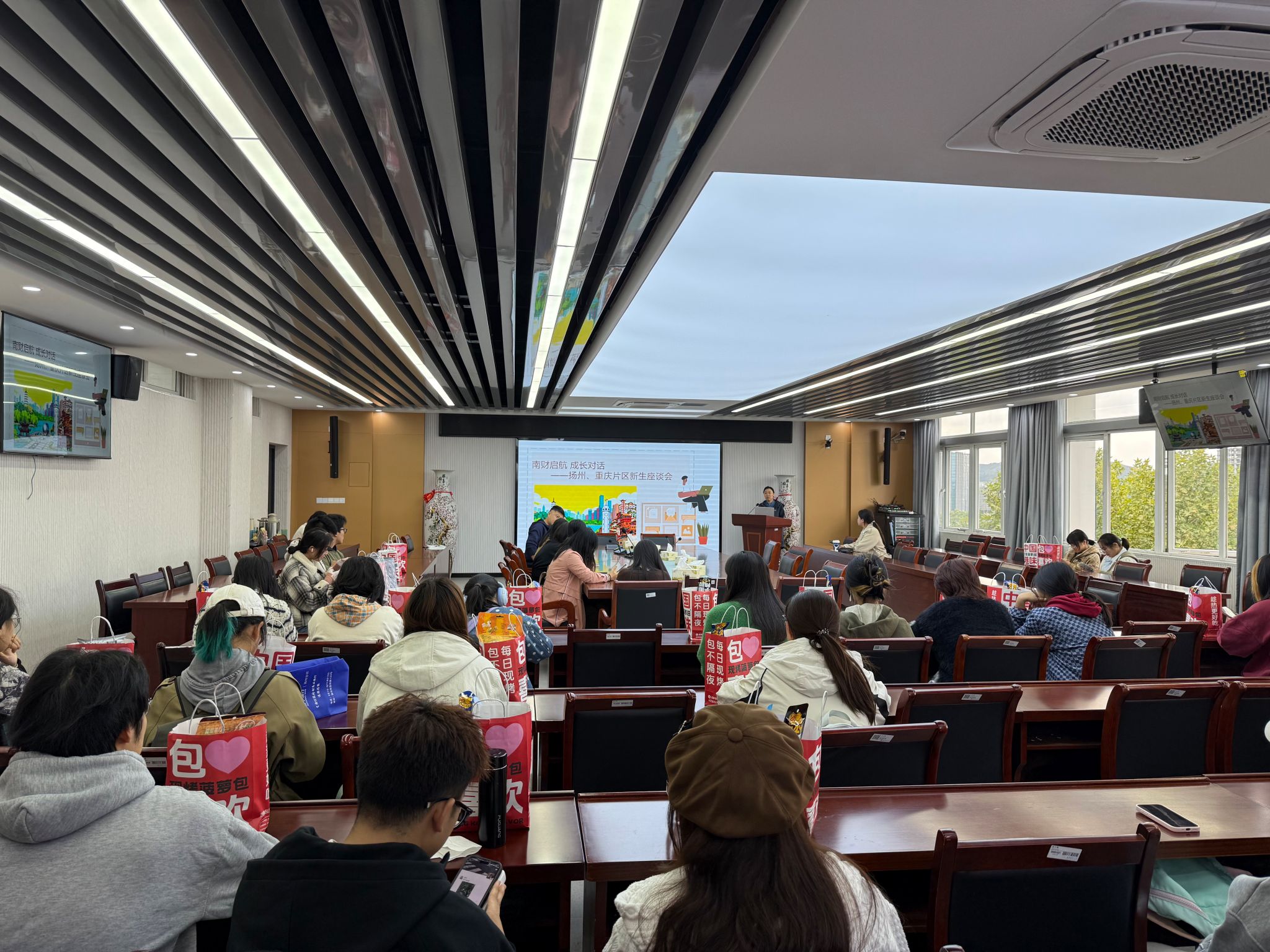 10 月 20 日中午,在德经楼 508 会议室召开扬州、重庆片区25级新生见面会。本次活动以 “南财启航 成长对话” 为主题,旨在凝聚乡情、赋能新生成长,鼓励学子积极展现南财风采,成为学校形象的优秀“合伙人”。参与本次见面会的有成人片 党委副书记张士青、各招生片区负责老师和80名新生代表,会议由学工办黄炜老师主持。