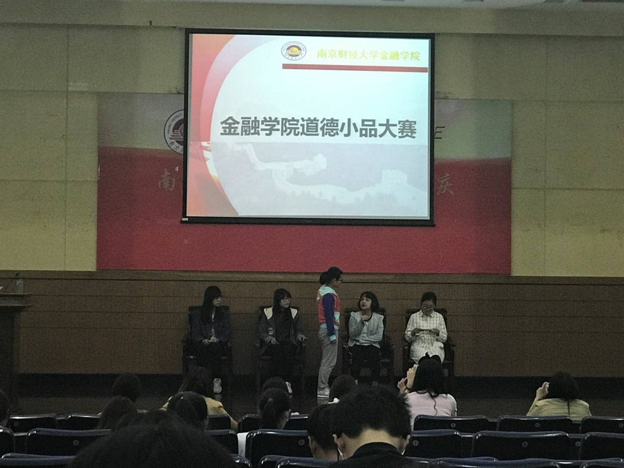 第一个出场的是投资1601班,他们带来的两个小品《碰不碰》和《理智爱国》再次将碰瓷和理智爱国两个社会热点摆上舞台,展现了当今大学生对这两个问题的理性看法与对世人的劝诫。紧接着信用1601班又上演了《责任》与《扶不扶》两处好戏,将新时代大学生对责任与老人摔倒该不该扶的理解与思考缓缓道来。随后保险1601又为大家带来“四响炮”——《学习风云》、《座位》、《高能白薯团》和《文明是谁的道德绑架》。与聚焦社会问题不同,保险班将目光集中在校园生活中的道德现象上,将身边的道德问题揭露并给予了学生观众们新的启发思考。后面班级的表现令人惊喜不断。金融1603的《面与面》温暖揪心、金融1604的《乞丐与小女孩》呼唤爱与平等、金工1602的《老人摔倒之后》针砭时弊、金工1601的《孩子啊孩子》和《马哲课上》使教育者与学生有了更深的思考、金融1601的《小美的蜕变》以小见大阐述道德内涵、金融1605的《我最爱国》教人打开爱国的正确方式、金融1602的《尊重二字》警醒我们时刻谦虚时刻尊重。