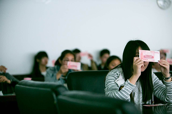 会议伊始,张士青老师致辞,感谢蔡敏科长百忙之中能来到成人片 对学生开展诚信教育和传授银行业务知识;希望希望今后能多交流继续合作。讲座开始后蔡科长先是从新版人民币的发行给同学们说了中国目前的假币现状,并倡导大家拒绝使用假币,诚信做人,发现假币应主动联系公安机关或银行;接着,为了让同学们能够更加明确区分真假人民币,她发给每位同学一张真的新版人民币和一张假的新版人民币,并详细介绍了区分真假人民币的方法;随后,蔡科长又和我们分享了银行的一些工作情况并欢迎我们财大学子能够进入人民银行工作,同时告诫大家诚信是每个员工必须具备的基本品质。