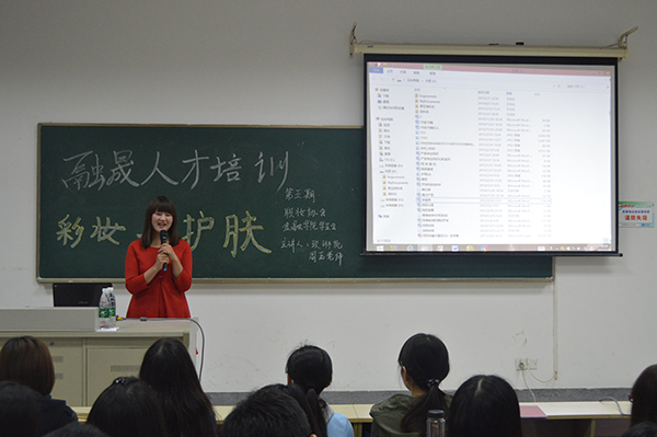 3月20号下午6:30,成人片 学生会学术部联合成人片 职妆学会举办了开学第一场融晟人才培训---彩妆与护肤。本次培训邀请了玫琳凯美容护肤顾问周玉老师为大家讲解彩妆护肤方面的技巧,为大家开启美丽之门。