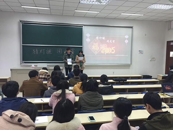 为庆祝元宵佳节,成人片 第二期青马班的同学3月5日下午17点,相聚在经济学科楼116教室,开展了一场别开生面的“猜灯谜,闹元宵”活动。活动由14级青马班班长孔啸远,团支书张莹莹同学主持开展。