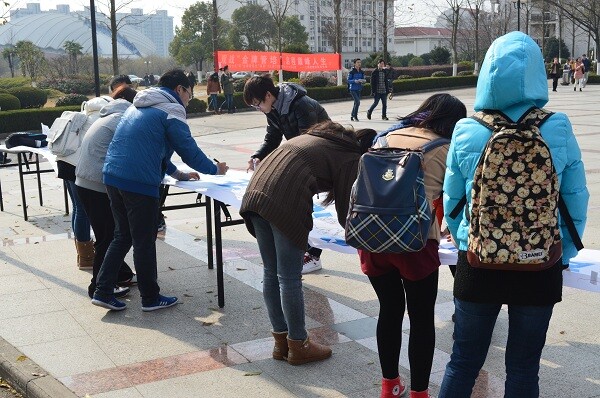 随着英语4、6级考试和期末考试的临近,成人片 学生会为了响应学校诚信考试的号召和鼓励同学们积极备战,于12月9日在中苑食堂广场上举办“诚信考试签名”活动。活动现场井然有序,气氛热烈。