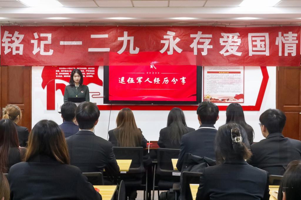 接着,金融2105班的退伍在校大学生刘思雨同学为大家讲述了自己参军入伍的心路历程,分享了自己入伍期间的有趣故事。她鼓励大家将无数小我融入大我,把拳拳爱国情、殷殷报国志转化为新时代奋斗实践,为民族复兴、强国建设凝聚起磅礴力量。