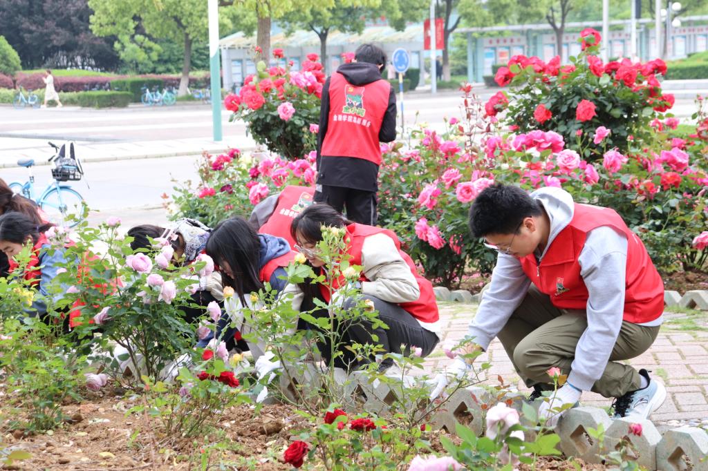 挂牌仪式后进行了园艺劳动实践环节。园艺师展示了锄草松土等具体的劳动方法,在场师生们现场并实践。金融2305班李韵同学总结了自己的这次劳动经历,她说到,躬身耕耘,挥洒汗水,这样的磨炼机会很难得,也很接“地气”,和同学老师们一起,既让自己有团队协作的意识,也锻炼了自身的劳动能力,与大地“零距离”接触,更让劳动教育多了一份“真情实感”。