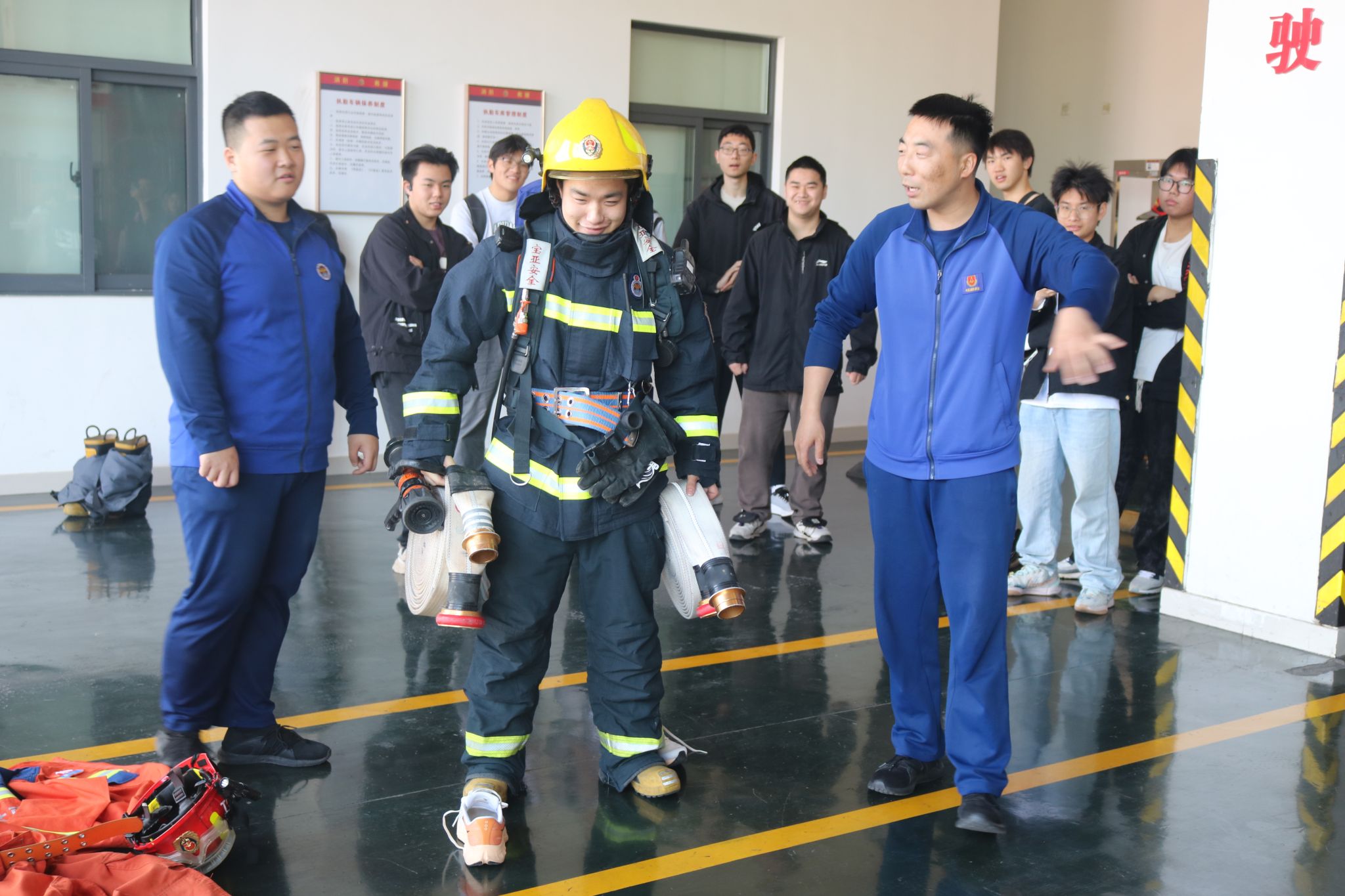 消防安全知识科普环节,消防员以典型火灾案例为切入点,系统讲解火灾预防、逃生及应急处置方法。通过情景再现与数据剖析,将抽象知识转化为实用技能,引发师生积极互动。问答中,大家就日常隐患、避险技巧踊跃提问;实践体验时,部分师生参与消防水带操作与消防服穿戴,切身感受消防员工作强度与职业风险,掌握基础消防技能。