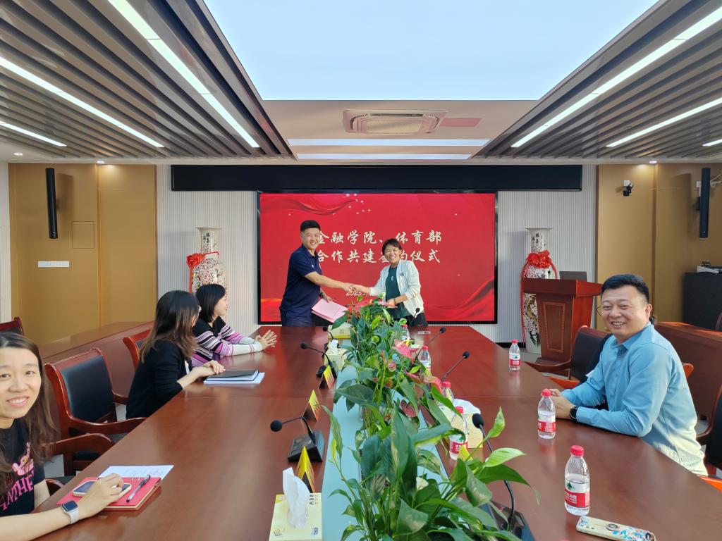 10月16日下午,成人片 与校体育部合作共建签约仪式在德经楼508会议室举行。校体育部主任严永军、副主任李树梅、教学教研室副主任付爽、高水平竞训中心副主任徐亚涛、办公室主任陈胜利以及成人片 党委副书记张士青、副院长陈晓慧、学工办主任黄炜、团委书记韩娅、办公室冒林波老师参加了签约仪式。签约仪式由成人片 党委副书记张士青主持。