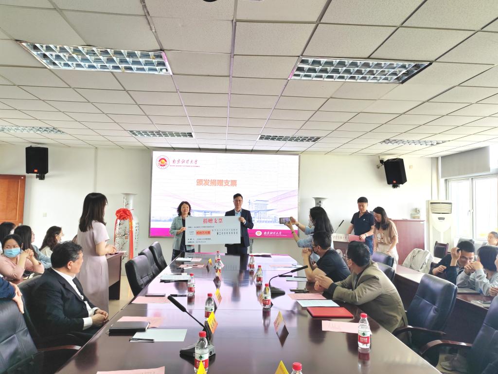 聘任仪式后,举行了“江苏安立丰控股集团教育发展基金”捐赠仪式。陆明峰处长、李玉琴书记、江苏安立丰控股(集团)有限公司副总经理吕健共同签订了捐赠协议并颁发捐赠证书和捐赠支票。
