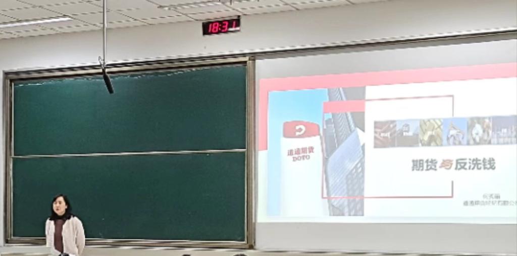 3月27日,成人片 邀请了道通期货经纪有限公司的何秀丽专家进行现场授课,为同学们讲授期货行业反洗钱的相关知识,以增强大学生反洗钱的风险意识、拓宽对期货行业反洗钱的认知。
