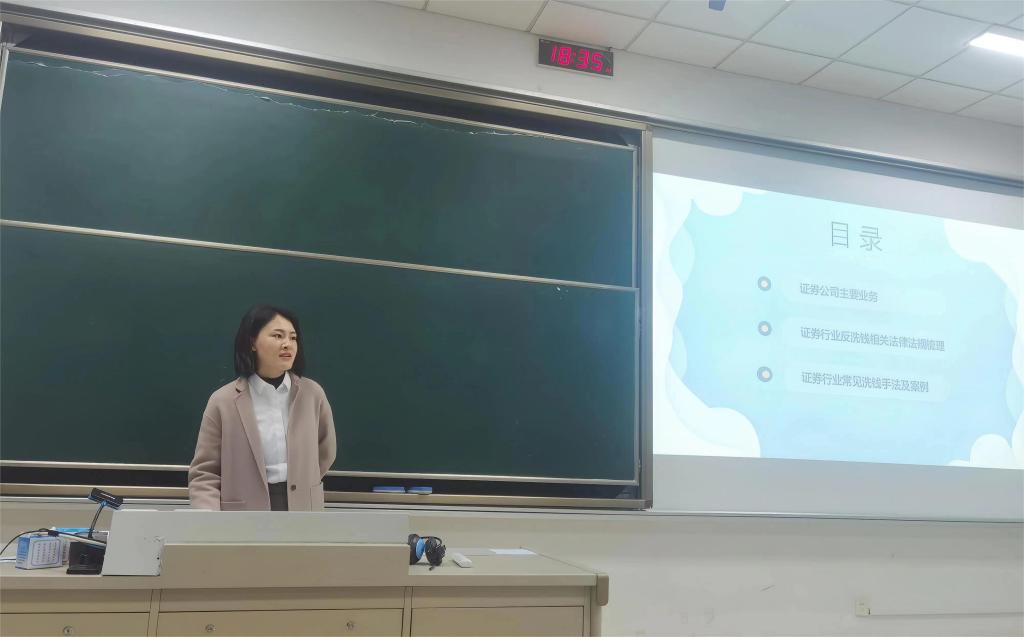 为贯彻落实“反洗钱进校园”活动,拓宽当代大学生对反洗钱相关法律法规的认知,增强大学生反洗钱风险意识,3月20日晚,成人片 开展了“证券行业反洗钱相关法规和实务案例”讲座,邀请南京证券的陈秀丛专家进行现场授课。