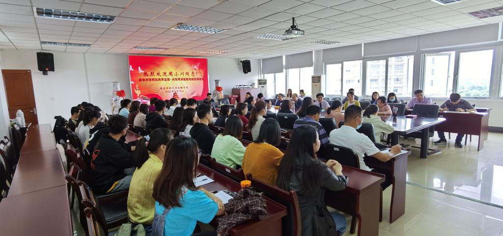 5月18日,成人片 举办党史学习教育专题“党史思政课”。省委党史工作办公室征研二处副处长周小川同志作《百年大党何以风华正茂——从党章演变看党的纪律建设》专题党史思政课,成人片 全体中层干部、党支部书记、辅导员及师生党员代表参加讲座。讲座由成人片 党委书记李玉琴主持。