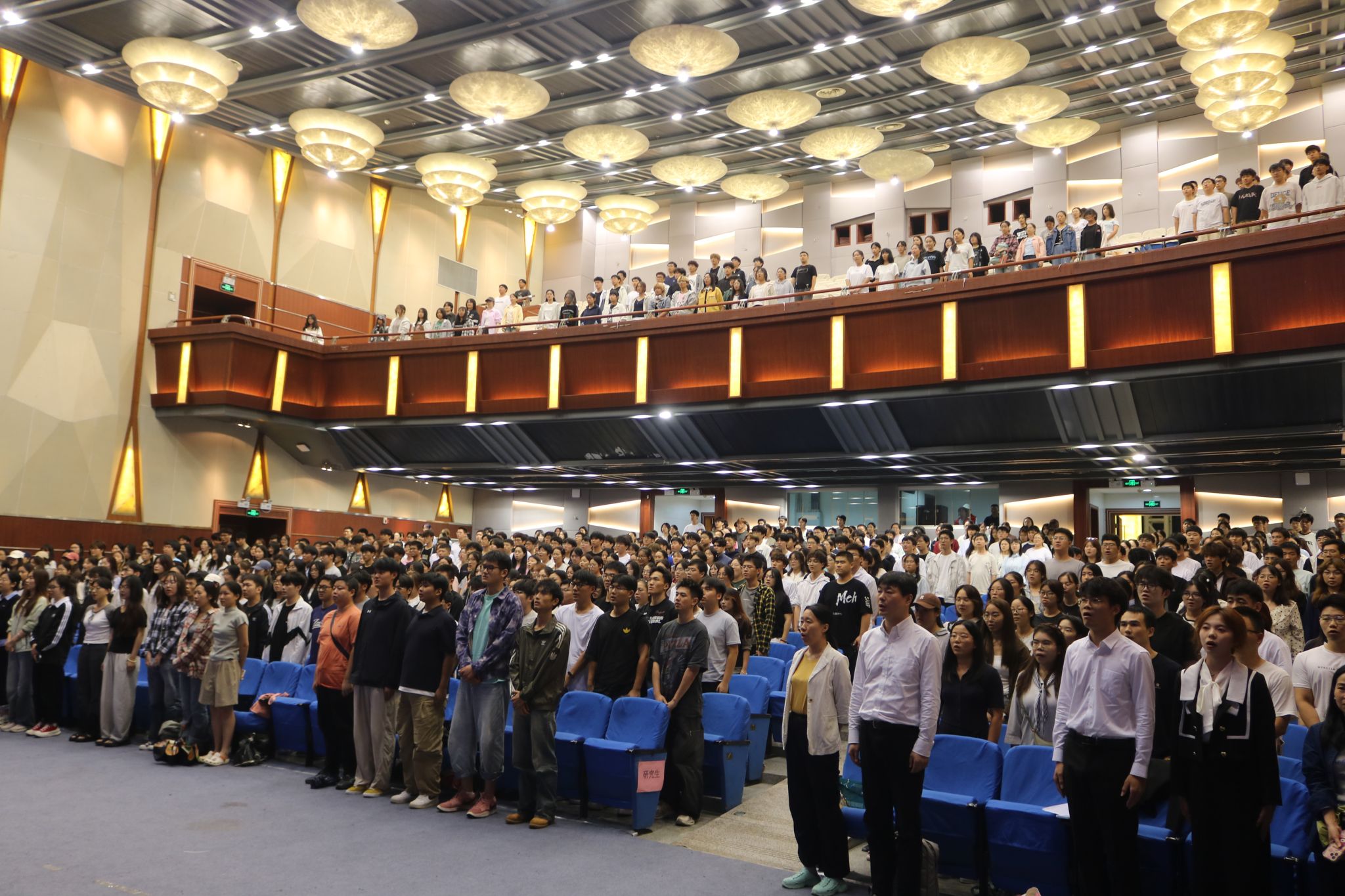 9 月 24 日晚,成人片 2025 级新生开学典礼暨入学教育在大学生活动中心礼堂隆重举行。学院党委书记孙菲、院长宣烨,副院长姚定俊、陈晓慧、尹雷,教师代表、校友代表及全体 2025 级新生参会,共同开启新生大学征程的第一站。典礼由学院党委副书记张士青主持。