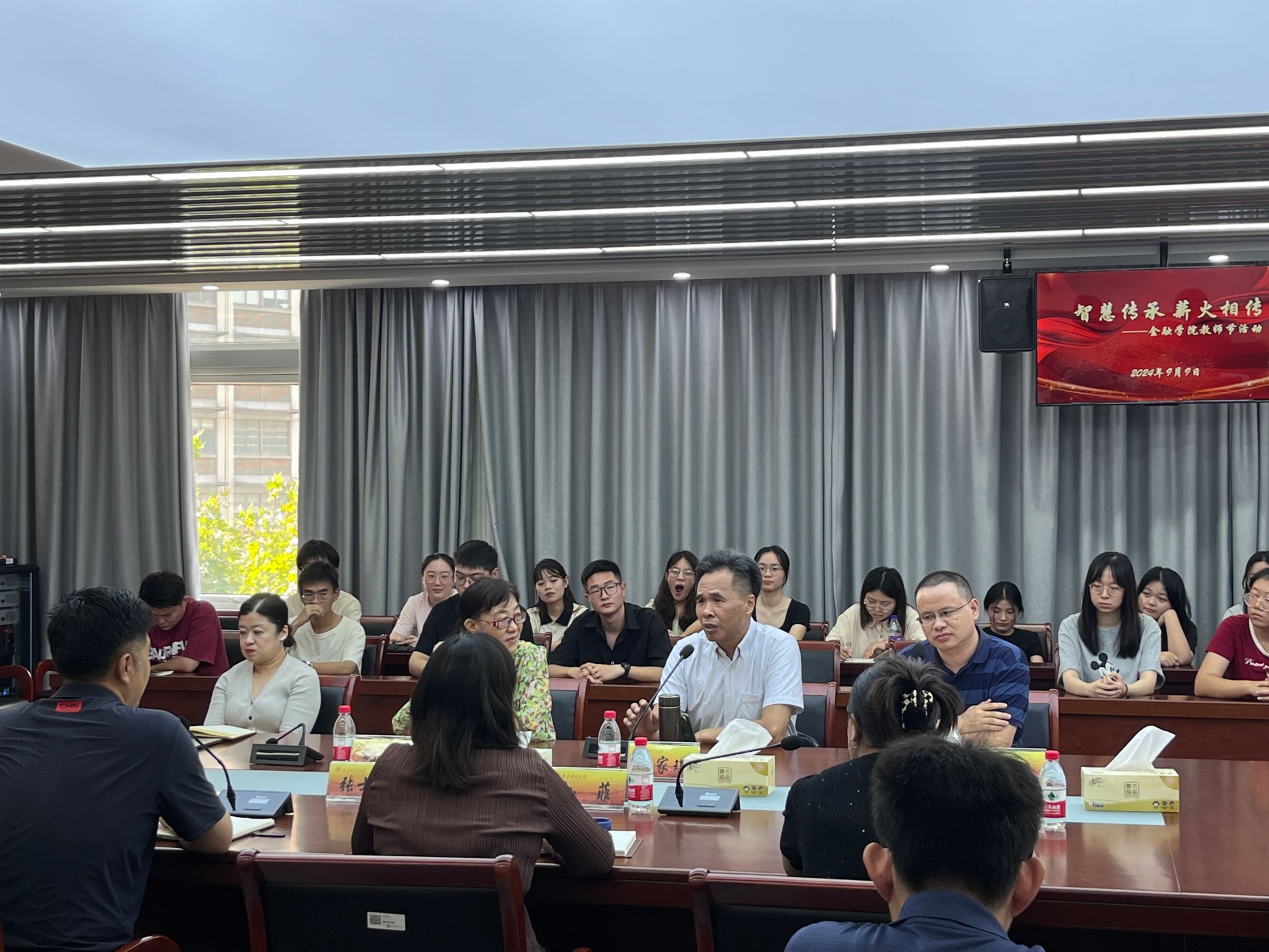 为更好地发挥退休教师的示范引领作用,帮助青年教师和学生快速成长,9月9日在第40个教师节来临之际,成人片 关工委在德经楼508会议室举办“智慧传承 薪火相传”教师节活动。学院关工委主任、党委书记孙菲,关工委副主任、离退休教师郭光老师,离退休教师王家琪老师以及中年教学骨干教师潘群星老师、刘圣囡老师出席活动。学院青年教师和新生代表参加活动,活动由院关工委副主任、党委副书记张士青主持。
